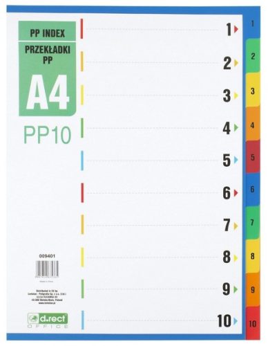 Elválasztólap A/4 1-10, PP d.rect
