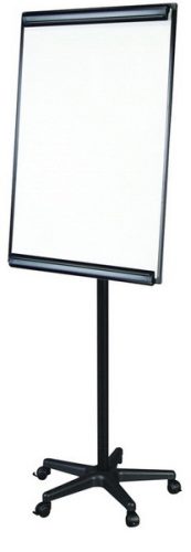 Konferenciák és előadások megszokott tartozéka. Mágneses és szárazon törölhető felület, fehér alumínium keret. A papírt két kiálló kampóra kell felakasztani, a kampók közötti távolság állítható, írószertartó.