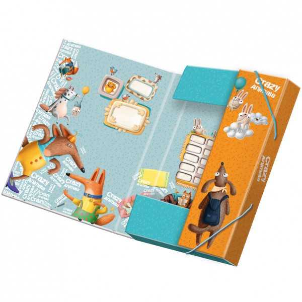 Kiváló minőségű kívül , belül nyomott karton gumis füzetboxok, különböző mintákkal. Belsejében órarend található. Mérete: 22,5 x 32 x 4,5 cm