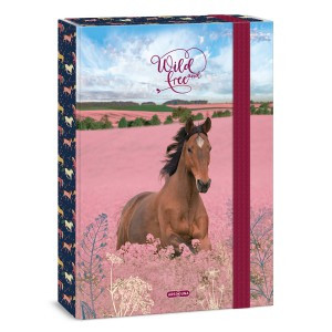 A/5 méretű füzetbox. Kemény, tartós kartonból, 4 cm-es gerinccel, fényes fóliával, 7 mm széles gumipánttal. Belseje egy színnel nyomott. Füzetek, iratok tárolására.