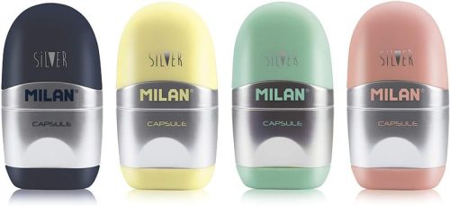 Hegyező 1 lyukú, tartályos, radírral Milan "Capsule" Silver