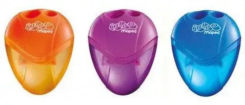 Műanyag test, fém pengével. Modern forma, kétlyukú, két különböző ceruzavastagsághoz is használható. Könnyen üríthető tartállyal.