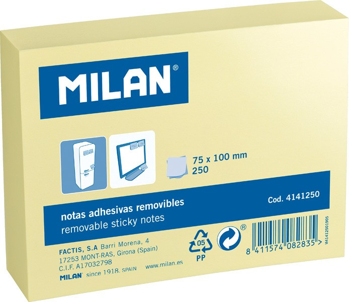 Öntapadó jegyzettömb 100x75 mm 250 lapos Milan sárga