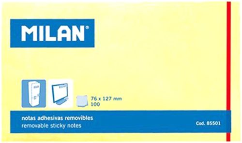 Öntapadó jegyzettömb 127x76 mm 100 lap Milan sárga