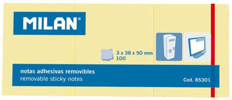 Öntapadó jegyzettömb 38x50 mm 100 lap Milan sárga