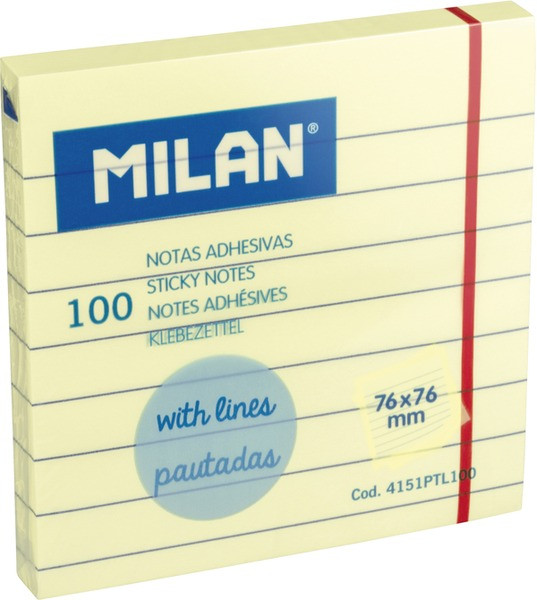 Öntapadó jegyzettömb 76x76 mm 100 lapos, vonalazott Milan sárga