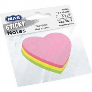 Szív formájú öntapadós jegyzet 70x70mm méretű , áthelyezhető, 3x25lap/csg.