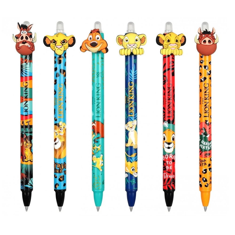 Különleges radírozható zselés toll, az Oroszlánkirály karaktereinek gumis díszeivel. 6 féle verzióban érhető el. Vonalvastagság: 0,5. Kéken ír.