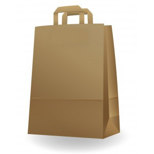 80g-os nátron papírból készült natúr színű nyomatlan füles papírtáska Méret:26x35cm+12cm redő 250db/kart.