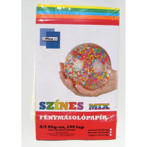 Sz.fénymásolópapír OFFICE 21 A/4 80g (100ív/csg) mix élénk színek 5x20lap