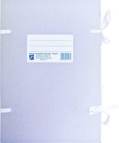 Nagyobb mennyiségű irat tárolására alkalmas. Szürke, 750 g-os karton, fehér szalag, előlapon címke.