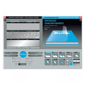 Öntapadós műanyag tankönyvborító, 50 x 30 cm méretű. Méretre vágható. Egy csomag 10 darabot tartalmaz. Tankönyvekhez és füzetekhez is használható. A termék használatához először a gerincnél található borítást távolítsa el és illessze rá a beborítani kívánt tankönyvet. Ezt követően a borítót a hátoldalon található segédvonalak segítségével tudja méretre igazítani. Majd óvatosan húzza le a borítást a fóliáról, és óvatosan simítsa rá az öntapadó felületet a tankönyv borítójára. Végül vágja méretre az öntapadó tankönyvborítót a könyv sarkainál és hajtsa rá a borítót a könyv éleire.