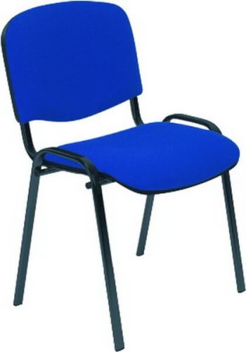 Látogatószék, festett fekete fémváz, fekete sz. műanyag háttámla és ülőlap borítás, kék szövet kárpitozás rakásolható kialakítás max 10 db.