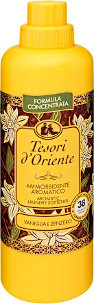 A keleties illatok kedvelőinek a Tesori d’Oriente textilöblítő ideális választás. A Vanília-gyömbér változatban az édes és enyhén fűszeres illatjegyek keverednek. A formulában lévő mikrokapszulák tapintás, vasalás vagy a ruha viselése közben fokozatosan felszabadulnak, ennek köszönhetően erősebb és hosszabban tartó illatintenzitást nyújt. Használata lazítja a textil- szöveteket és megkönnyíti a vasalást.