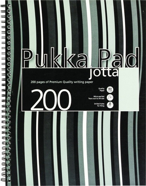 Spirálfüzet A/4 100 lapos, vonalas Pukka Pad "Jotta Pad" fekete-fehér